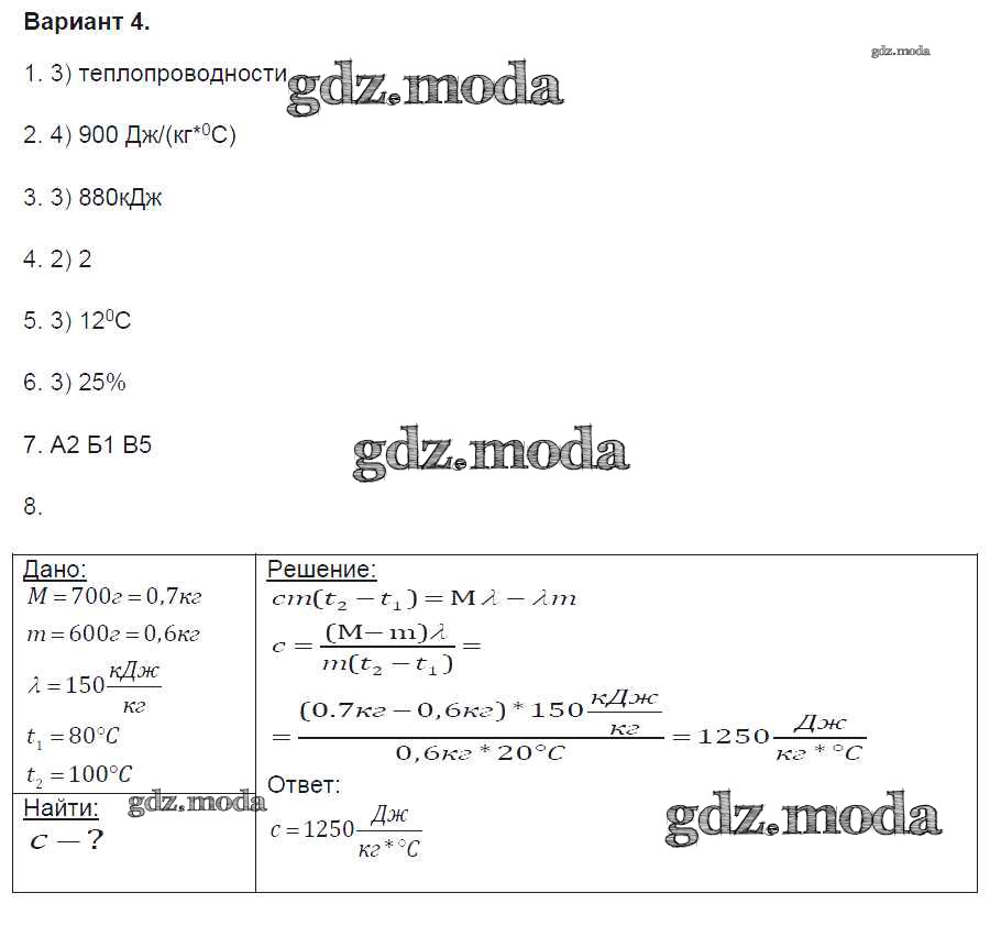 ОТВЕТ на задание № вариант-4 Контрольные и самостоятельные работы по Физике 8 класс Громцева УМК