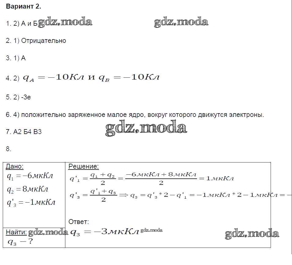 ОТВЕТ на задание № вариант-2 Контрольные и самостоятельные работы по Физике 8 класс Громцева УМК