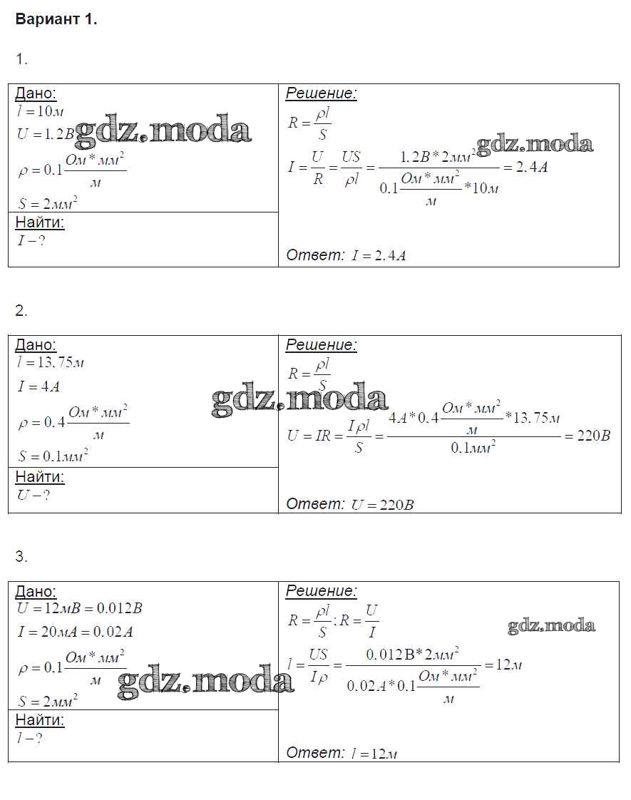 ОТВЕТ на задание № вариант-1 Контрольные и самостоятельные работы по Физике 8 класс Громцева УМК