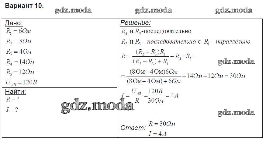 ГДЗ решение к заданию № вариант-10 Физика 8 класс Контрольные и самостоятельные работы Громцева О.И. (к уч. Перышкина) Экзамен 2017 ФГОС бесплатно на гдз.мода!