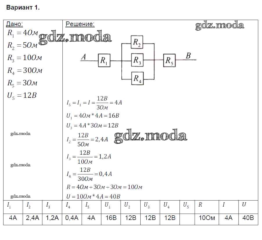 ГДЗ решение к заданию № вариант-1 Физика 8 класс Контрольные и самостоятельные работы Громцева О.И. (к уч. Перышкина) Экзамен 2017 ФГОС бесплатно на гдз.мода!
