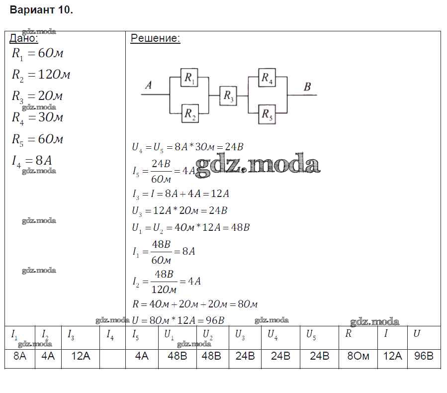 ОТВЕТ на задание № вариант-10 Контрольные и самостоятельные работы по Физике 8 класс Громцева УМК
