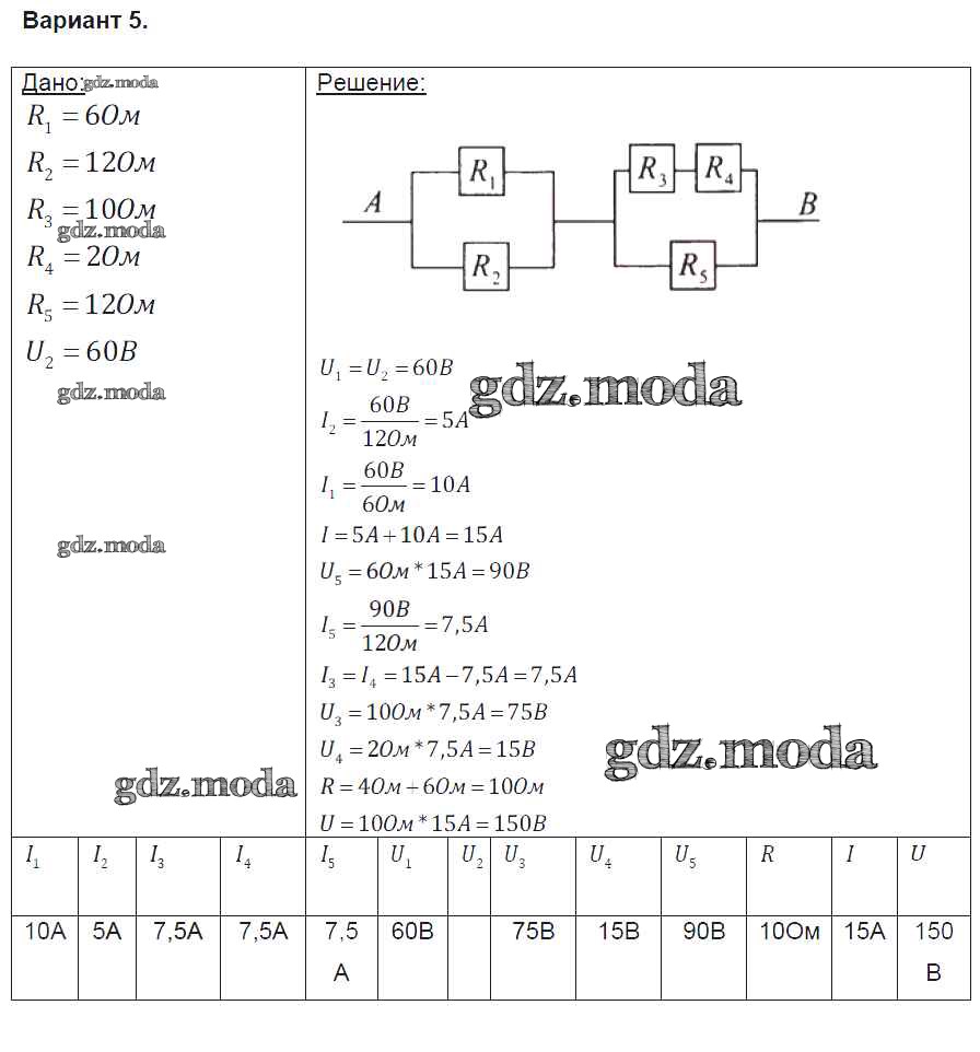 ГДЗ решение к заданию № вариант-5 Физика 8 класс Контрольные и самостоятельные работы Громцева О.И. (к уч. Перышкина) Экзамен 2017 ФГОС бесплатно на гдз.мода!