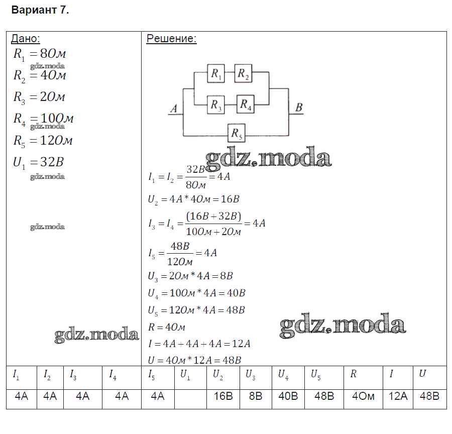 ГДЗ решение к заданию № вариант-7 Физика 8 класс Контрольные и самостоятельные работы Громцева О.И. (к уч. Перышкина) Экзамен 2017 ФГОС бесплатно на гдз.мода!