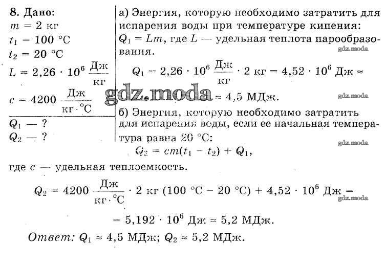 ГДЗ решение к заданию № 8 Физика 8 класс Исаченкова Л.А. Народная асвета 2018 бесплатно на гдз.мода!