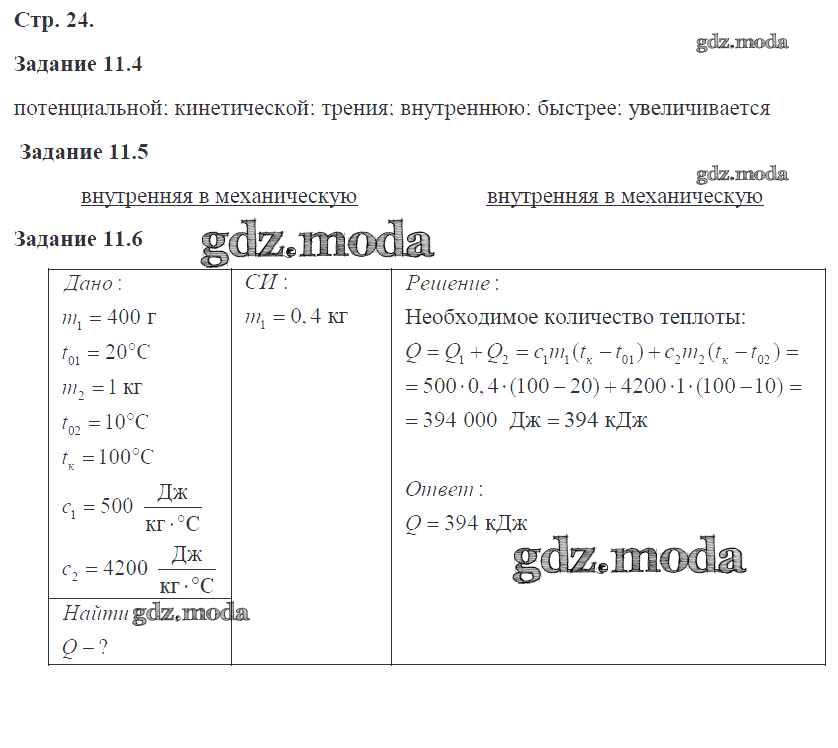 ГДЗ решение к заданию № 24 Физика 8 класс рабочая тетрадь Ханнанова Т.А. (к уч. Перышкина) Дрофа 2017 ФГОС бесплатно на гдз.мода!