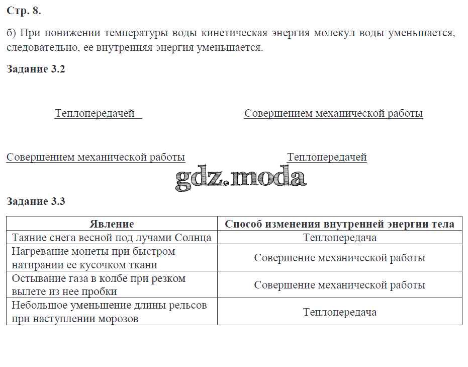 ГДЗ решение к заданию № 8 Физика 8 класс рабочая тетрадь Ханнанова Т.А. (к уч. Перышкина) Дрофа 2017 ФГОС бесплатно на гдз.мода!