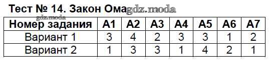 ОТВЕТ на задание № Тест-14. Закон Ома Контрольно-измерительные материалы (КИМ) по Физике 8 класс Бобошина