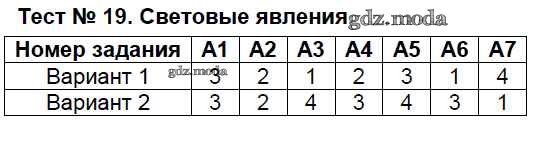 ОТВЕТ на задание № Тест-19. Световые явления Контрольно-измерительные материалы (КИМ) по Физике 8 класс Бобошина