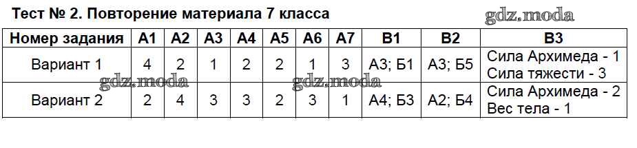 ОТВЕТ на задание № Тест-2. Повторение материала 7 класса Контрольно-измерительные материалы (КИМ) по Физике 8 класс Бобошина