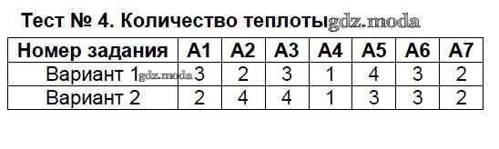 ГДЗ решение к заданию № Тест-4. Количество теплоты Физика 8 класс контрольно-измерительные материалы (КИМ) Бобошина С.Б. Экзамен 2014 ФГОС бесплатно на гдз.мода!