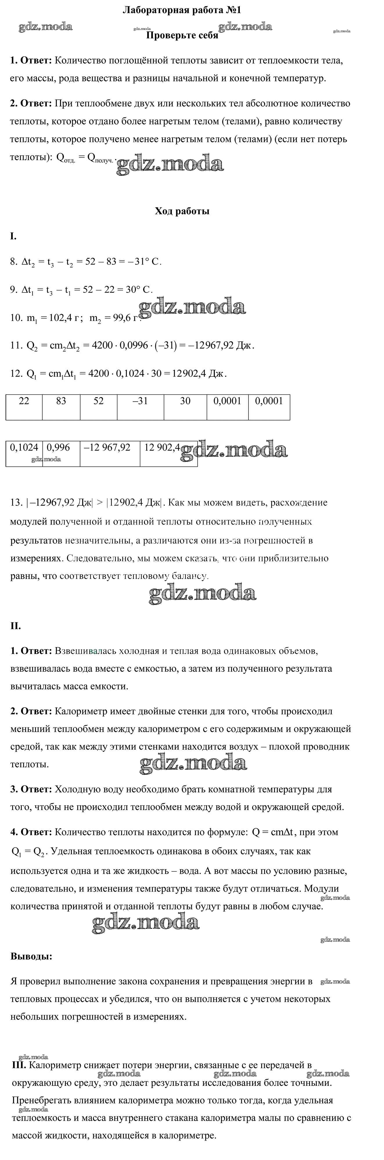 ГДЗ решение к заданию № 1 Физика 8 класс лабораторные работы Исаченкова Л.А. Аверсэв 2016 бесплатно на гдз.мода!