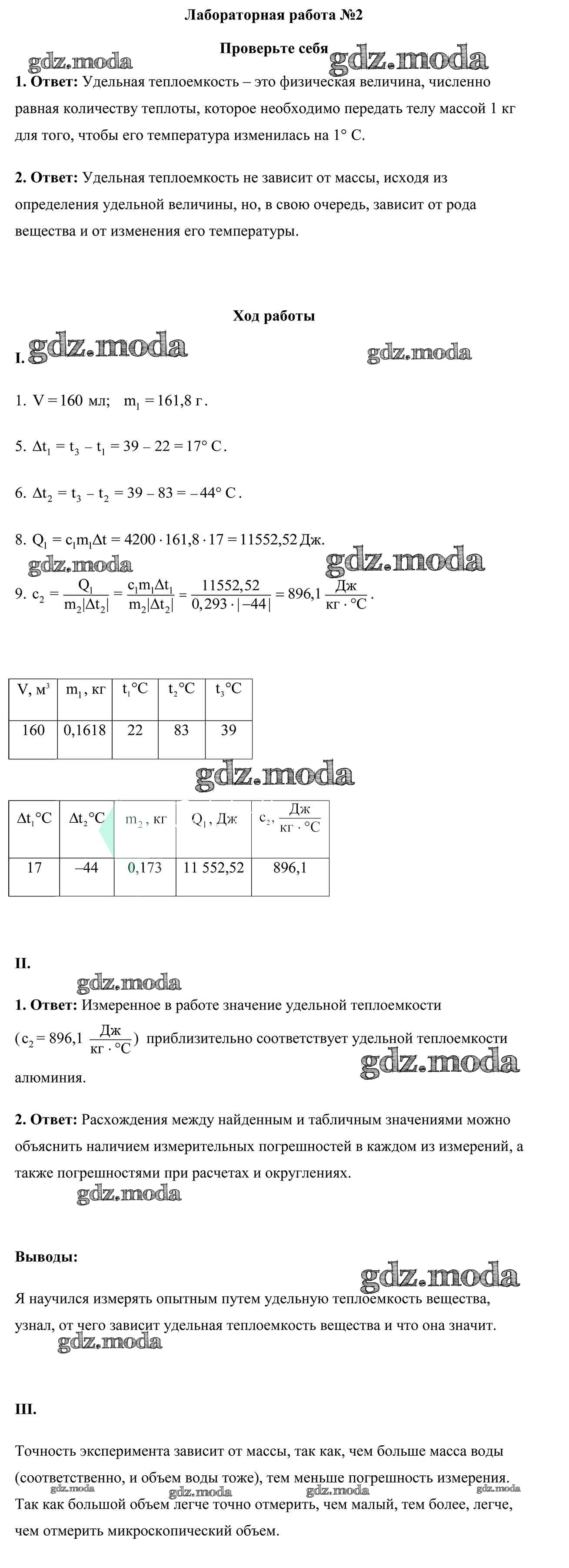 ГДЗ решение к заданию № 2 Физика 8 класс лабораторные работы Исаченкова Л.А. Аверсэв 2016 бесплатно на гдз.мода!