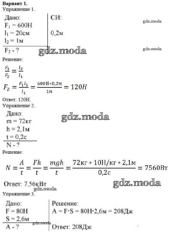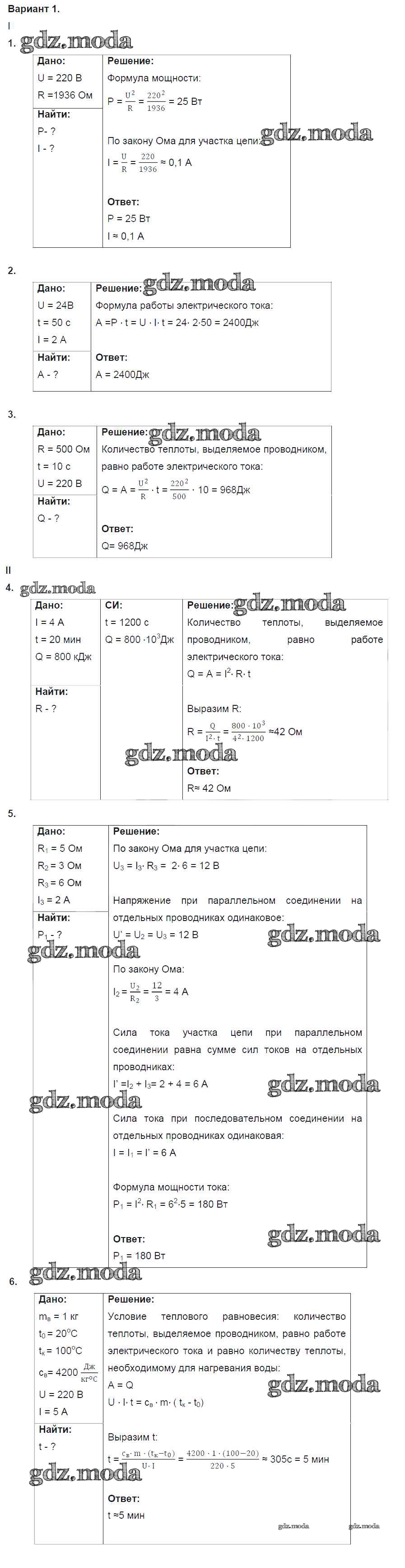 ОТВЕТ на задание № 1 Дидактические материалы по Физике 8 класс Марон Вертикаль