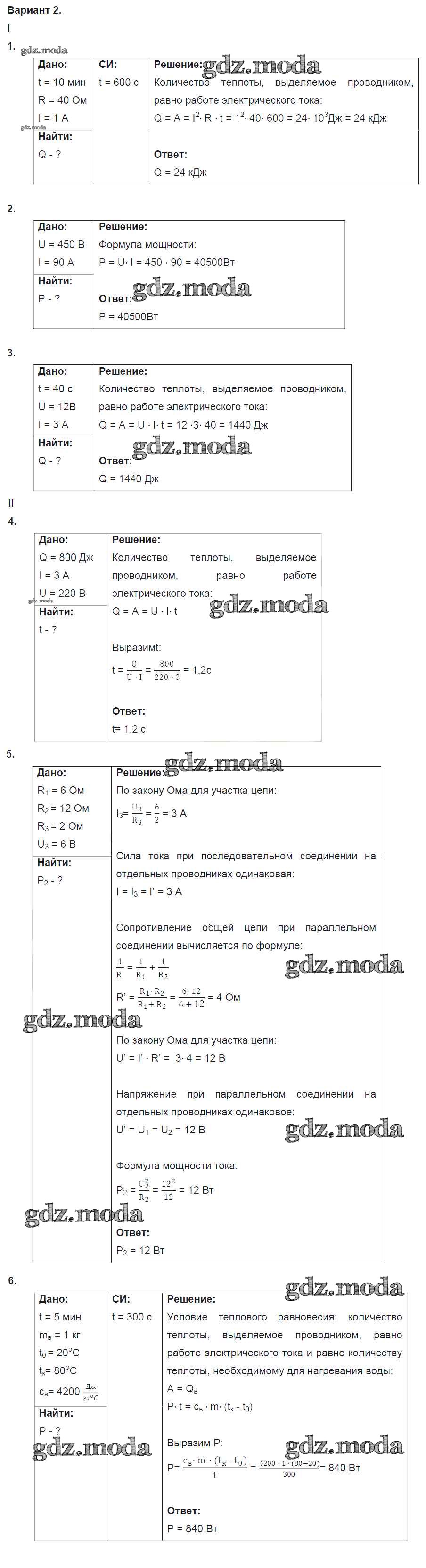 ОТВЕТ на задание № 2 Дидактические материалы по Физике 8 класс Марон Вертикаль