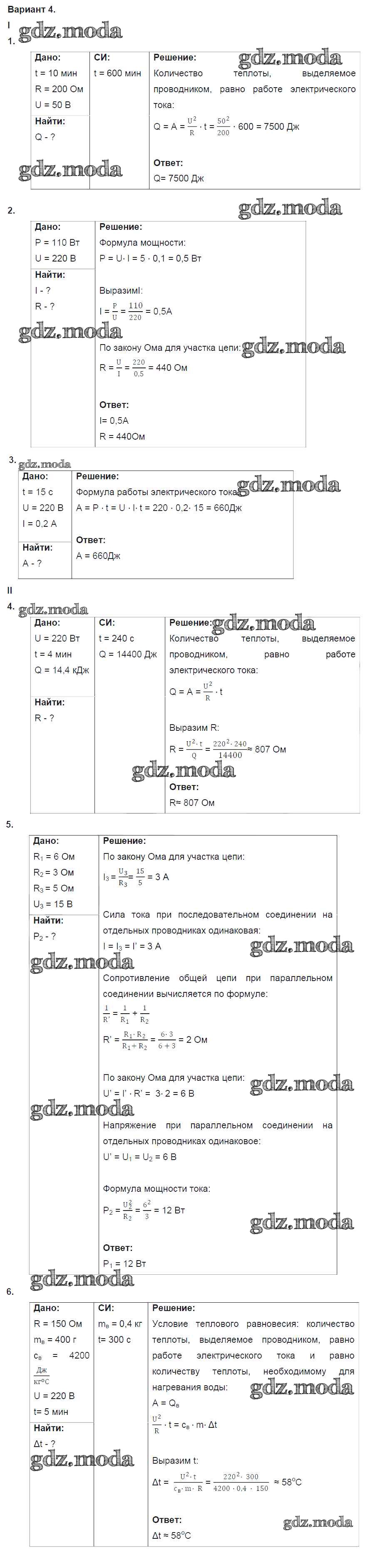 ОТВЕТ на задание № 4 Дидактические материалы по Физике 8 класс Марон Вертикаль