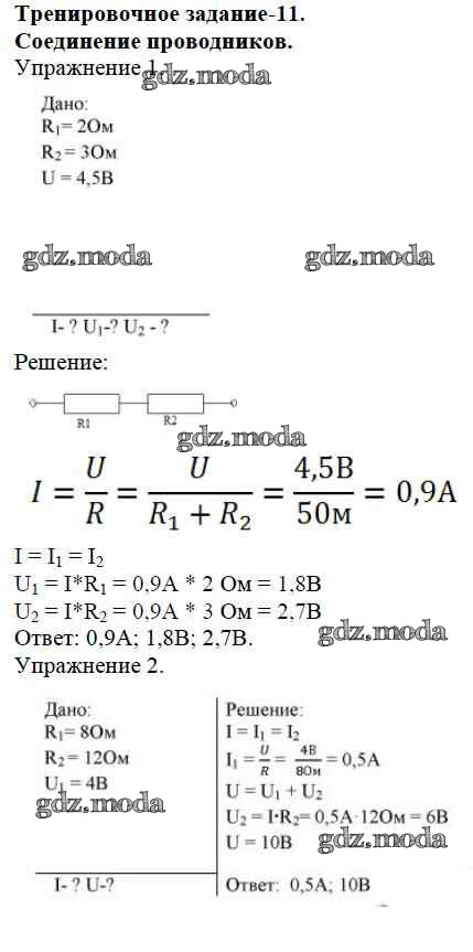 ОТВЕТ на задание № 11. Соединение проводников Дидактические материалы по Физике 8 класс Марон Вертикаль