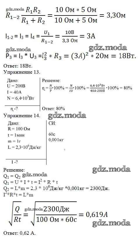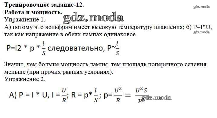 ОТВЕТ на задание № 12. Работа и мощность тока Дидактические материалы по Физике 8 класс Марон Вертикаль
