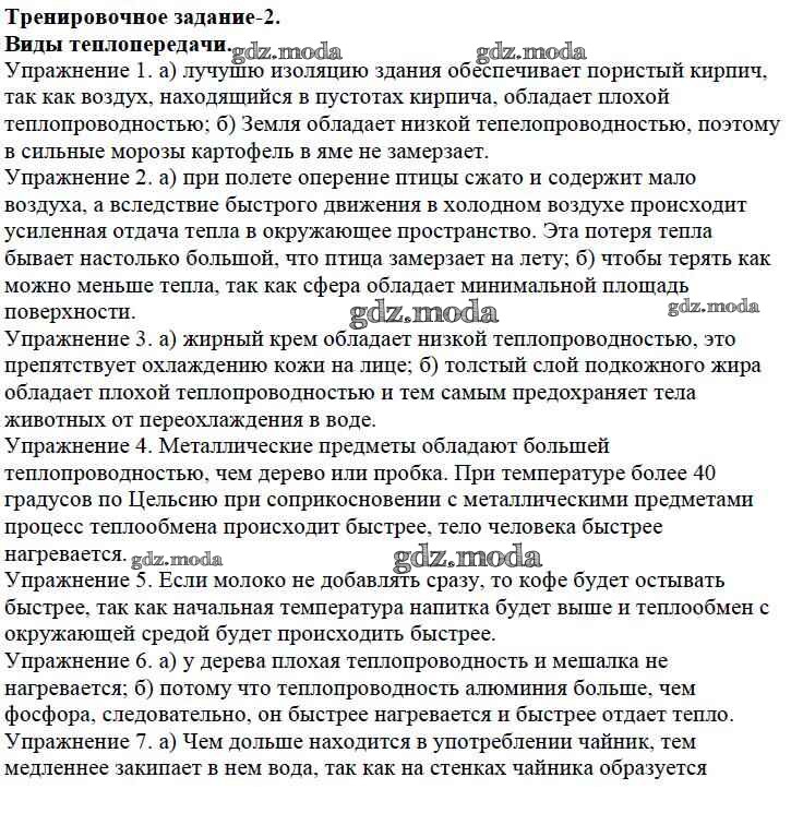 ОТВЕТ на задание № 2. Виды теплопередачи Дидактические материалы по Физике 8 класс Марон Вертикаль
