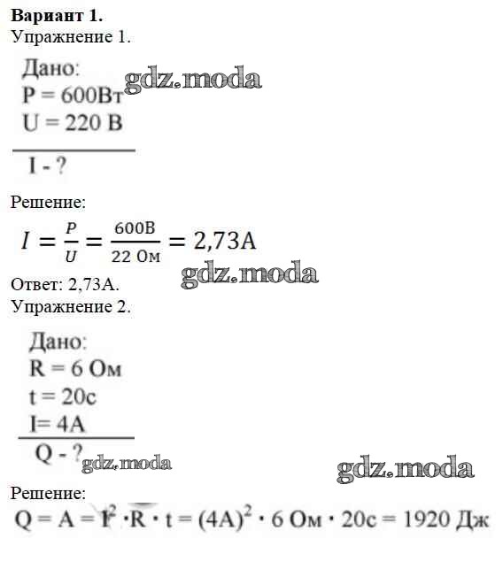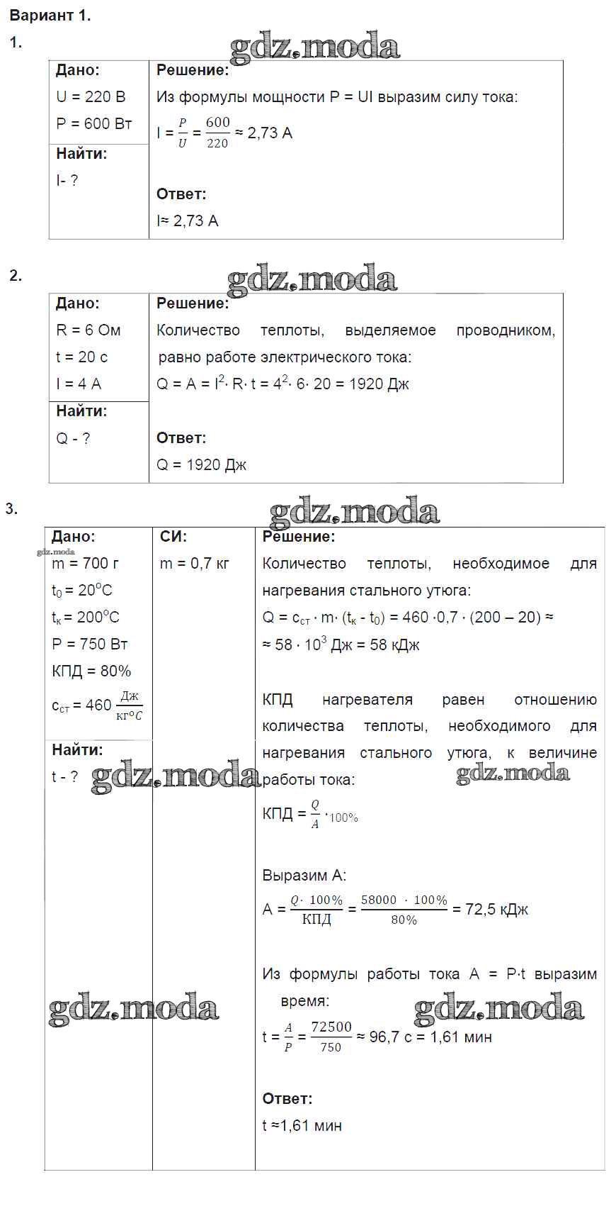 ОТВЕТ на задание № 1 Дидактические материалы по Физике 8 класс Марон Вертикаль