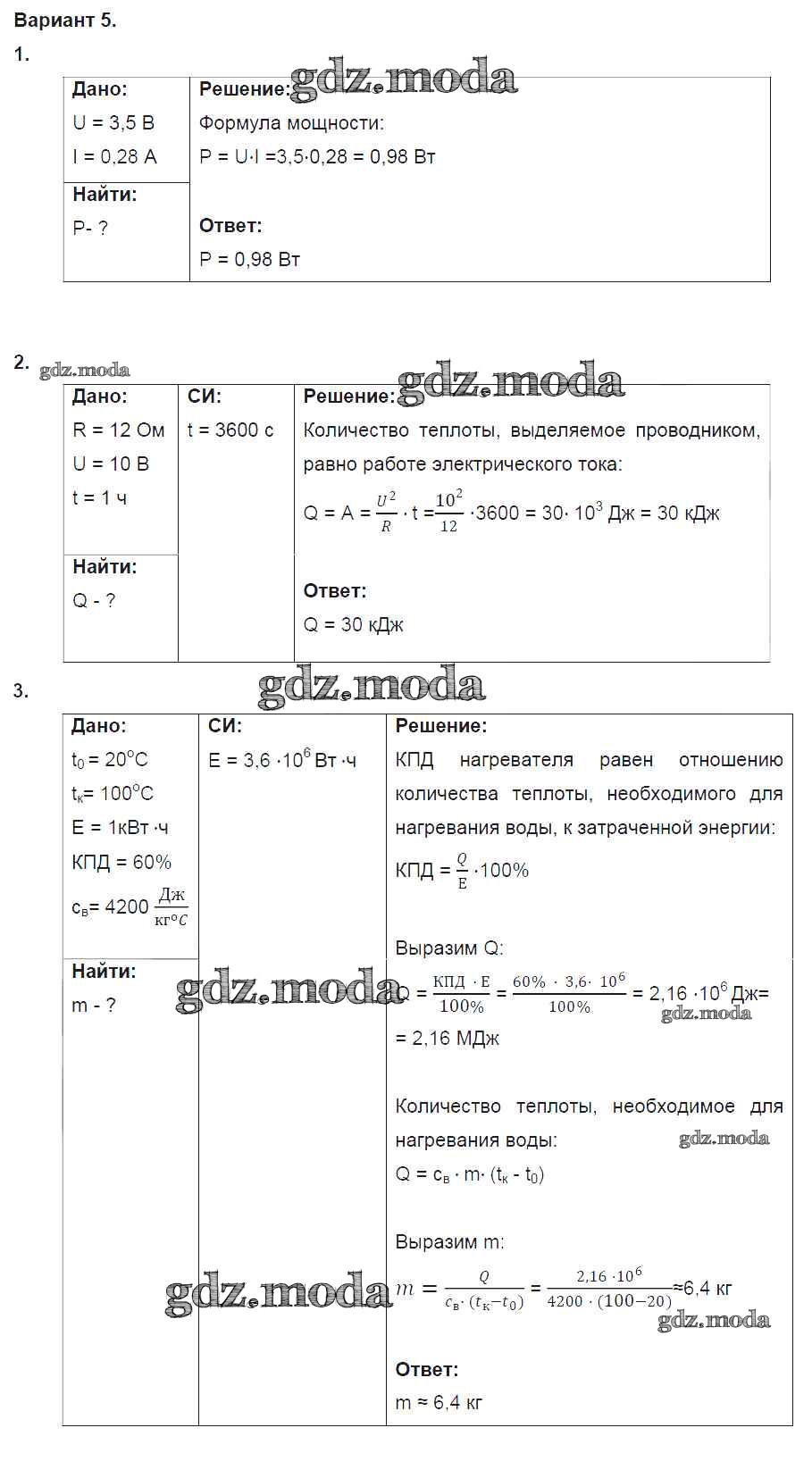 ОТВЕТ на задание № 5 Дидактические материалы по Физике 8 класс Марон Вертикаль