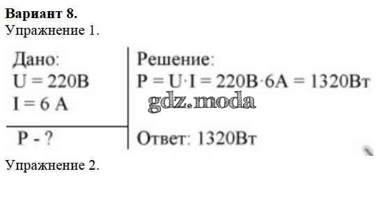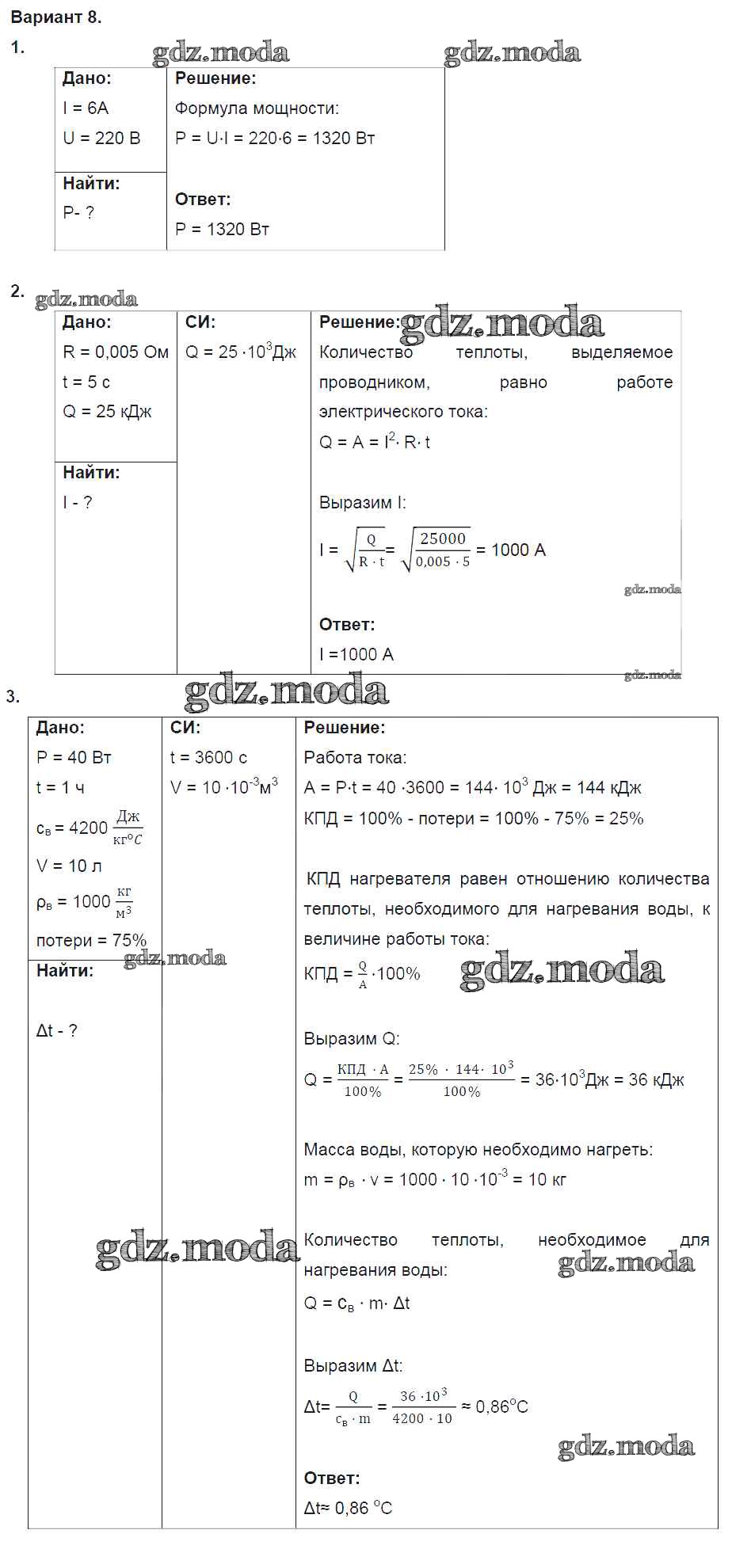 ОТВЕТ на задание № 8 Дидактические материалы по Физике 8 класс Марон Вертикаль