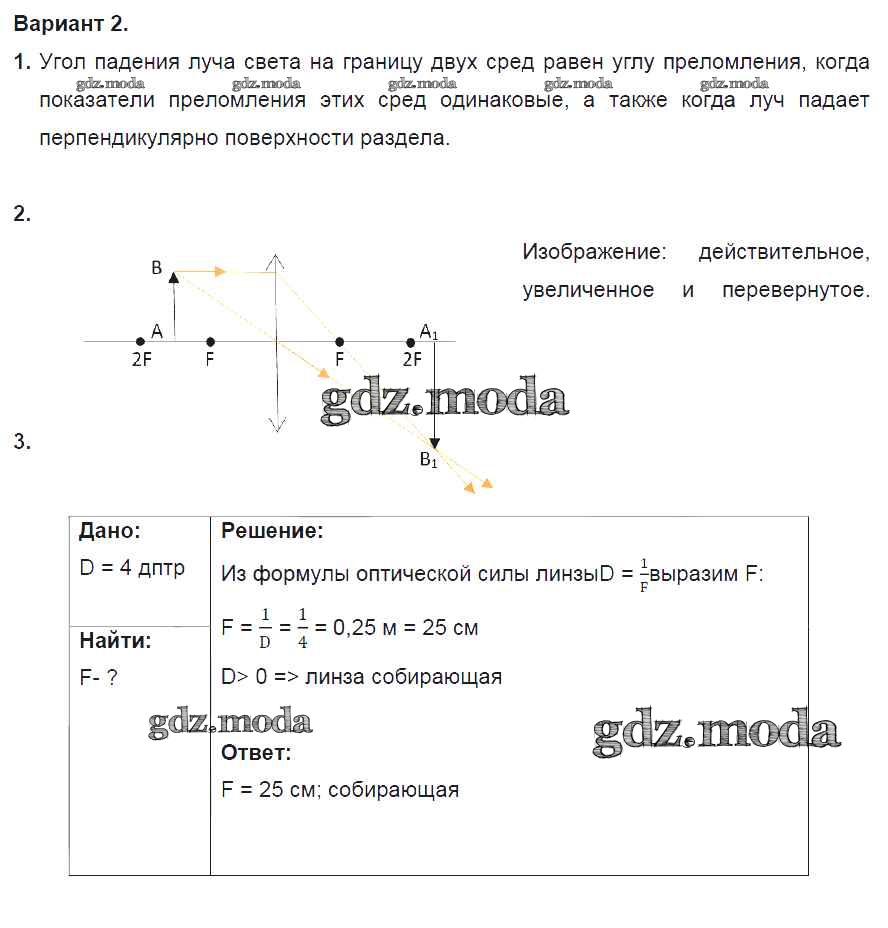 ОТВЕТ на задание № 2 Дидактические материалы по Физике 8 класс Марон Вертикаль