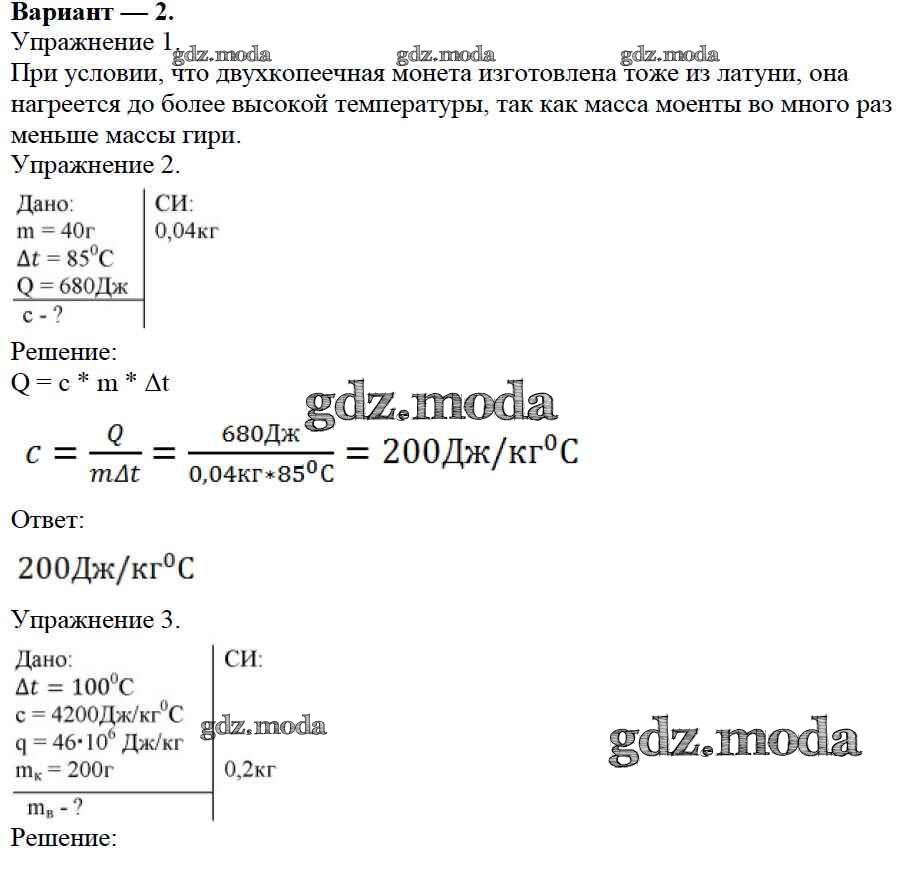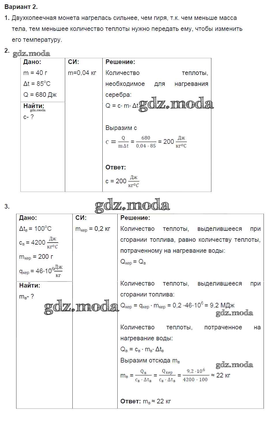 ОТВЕТ на задание № 2 Дидактические материалы по Физике 8 класс Марон Вертикаль