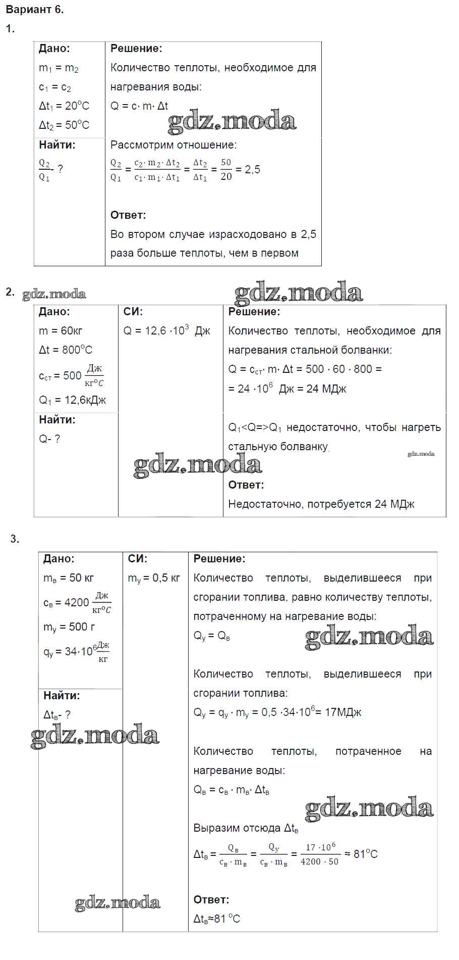 ОТВЕТ на задание № 6 Дидактические материалы по Физике 8 класс Марон Вертикаль
