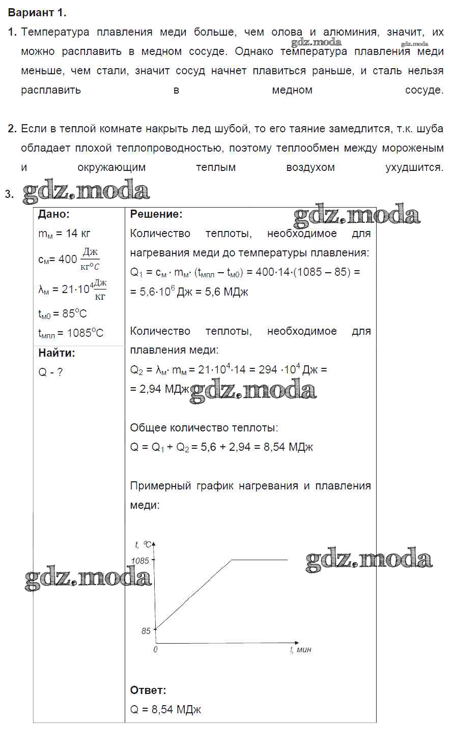 ГДЗ решение к заданию № 1 Физика 8 класс Дидактические материалы Марон А.Е. (к уч. Перышкина) Дрофа 2016 ФГОС бесплатно на гдз.мода!
