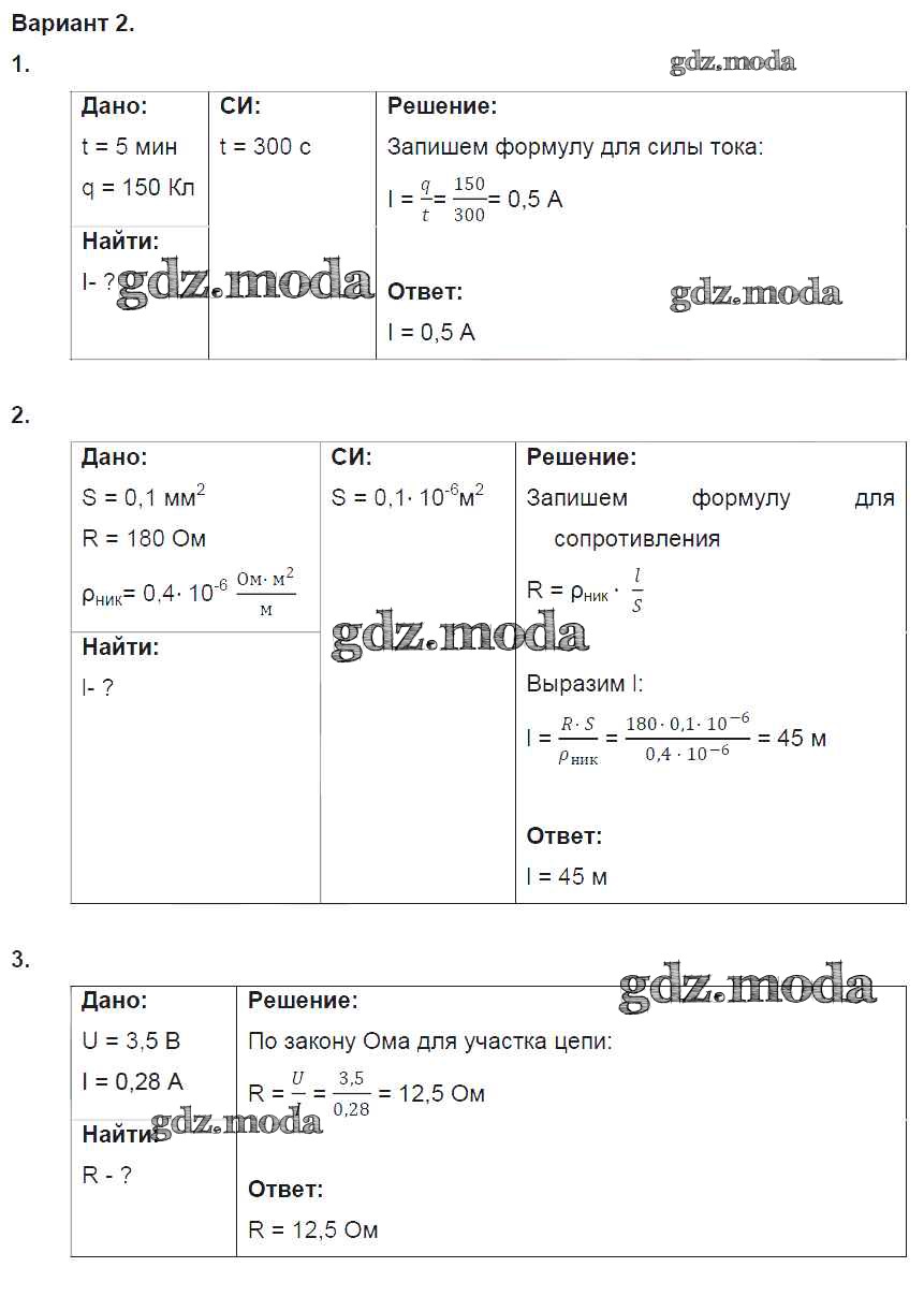ОТВЕТ на задание № 2 Дидактические материалы по Физике 8 класс Марон Вертикаль
