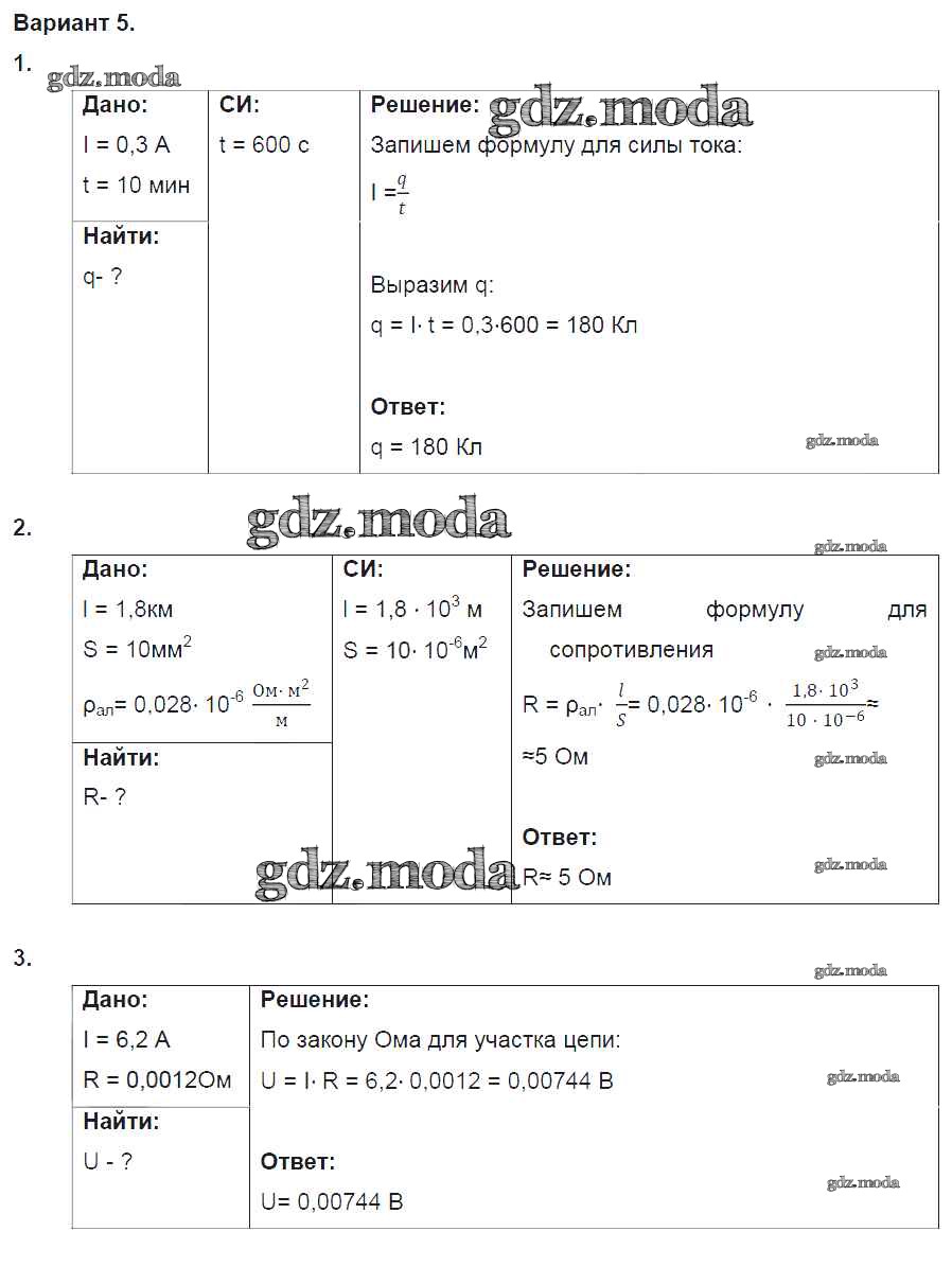 ОТВЕТ на задание № 5 Дидактические материалы по Физике 8 класс Марон Вертикаль