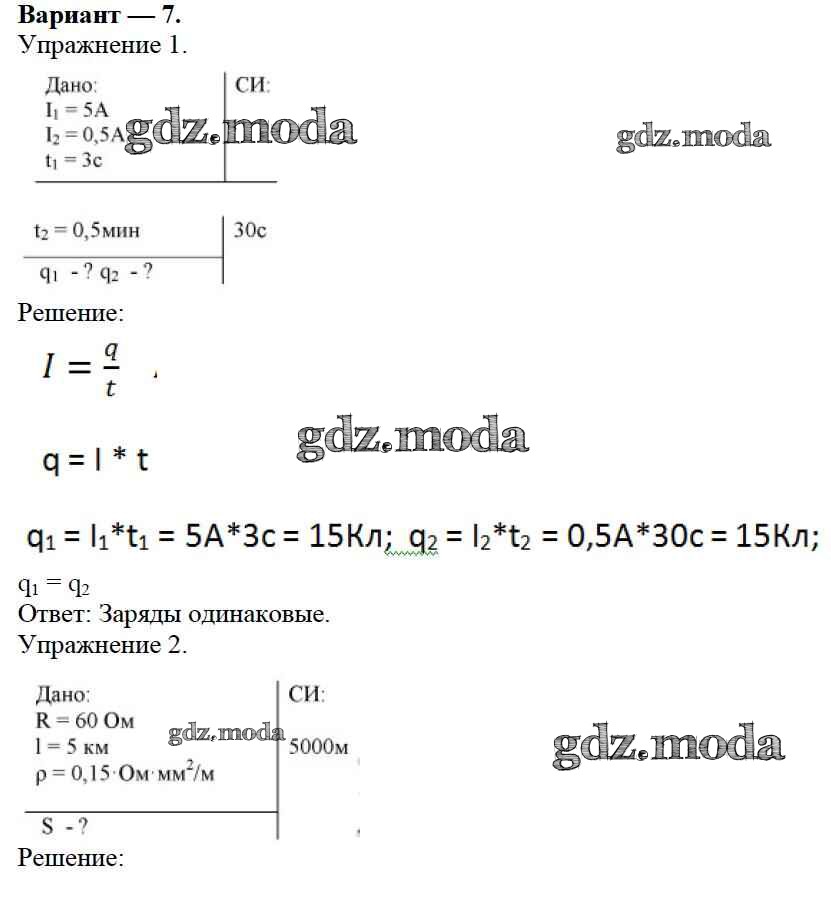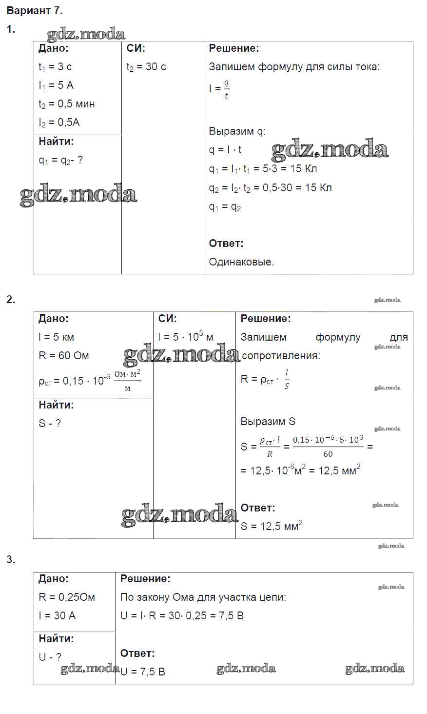 ОТВЕТ на задание № 7 Дидактические материалы по Физике 8 класс Марон Вертикаль