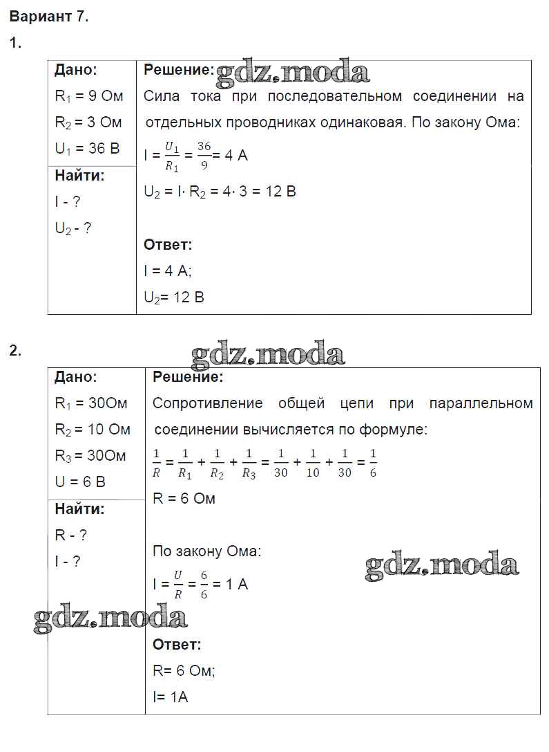 ОТВЕТ на задание № 7 Дидактические материалы по Физике 8 класс Марон Вертикаль
