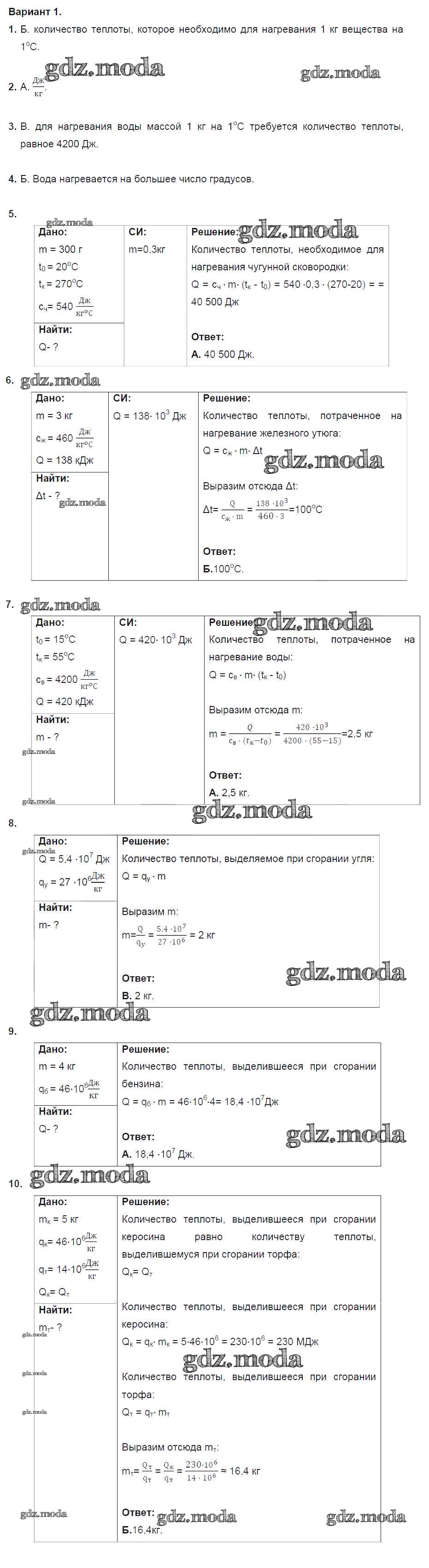 ОТВЕТ на задание № 1 Дидактические материалы по Физике 8 класс Марон Вертикаль