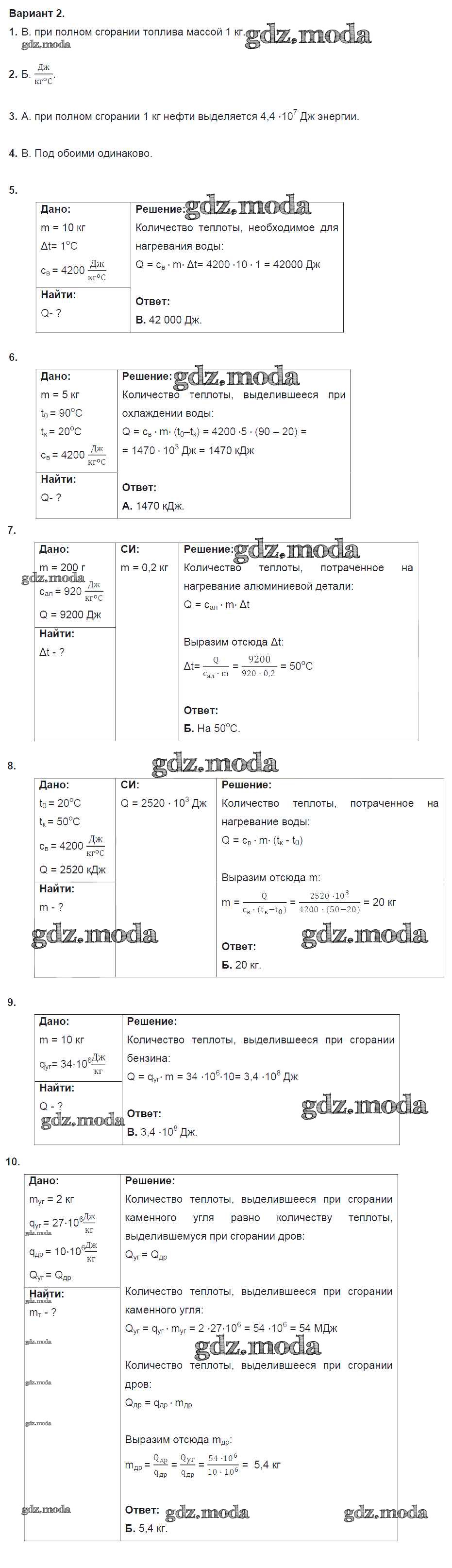 ОТВЕТ на задание № 2 Дидактические материалы по Физике 8 класс Марон Вертикаль
