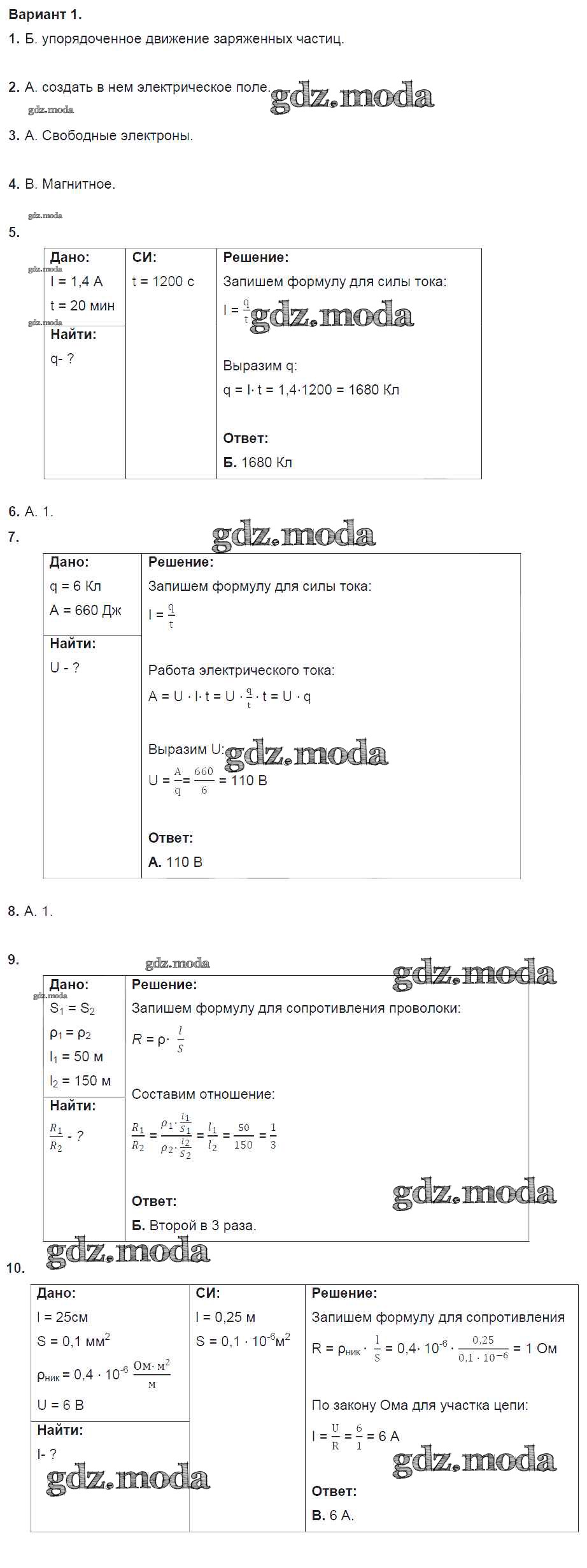 ОТВЕТ на задание № 1 Дидактические материалы по Физике 8 класс Марон Вертикаль