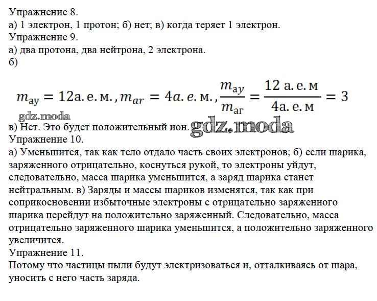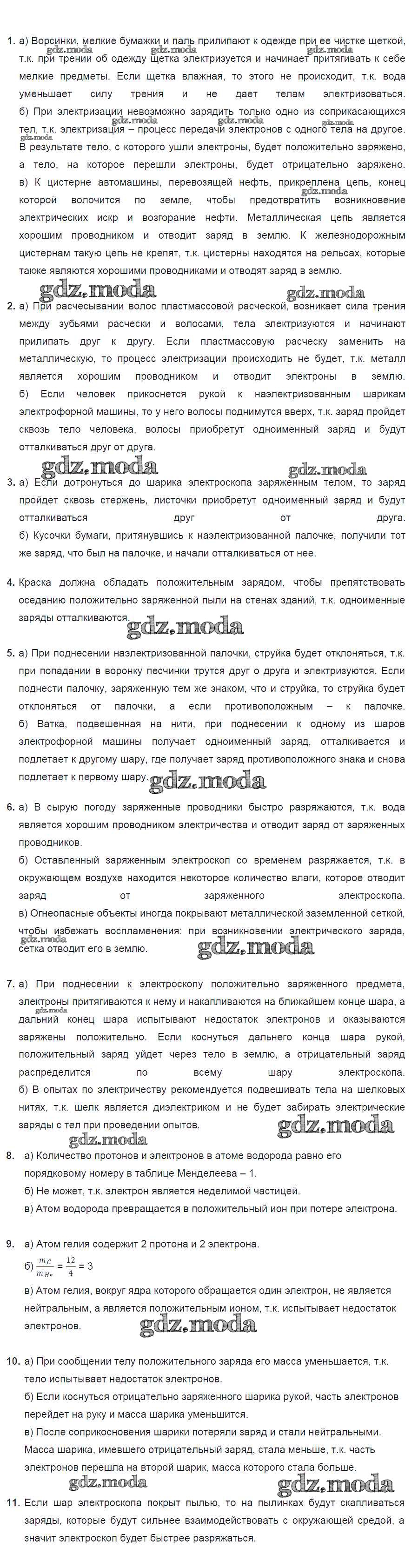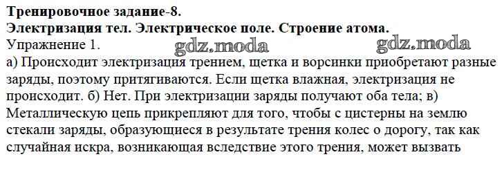 ОТВЕТ на задание № 8. Электризация тел. Электрическое поле. Строение атомов Дидактические материалы по Физике 8 класс Марон Вертикаль