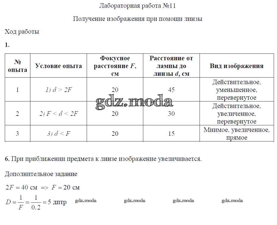ГДЗ решение к заданию № ЛР №11. Получение изображения при помощи линзы Физика 8 класс тетрадь для лабораторных работ Минькова Р.Д. (к уч. Перышкина) Экзамен 2014 ФГОС бесплатно на гдз.мода!