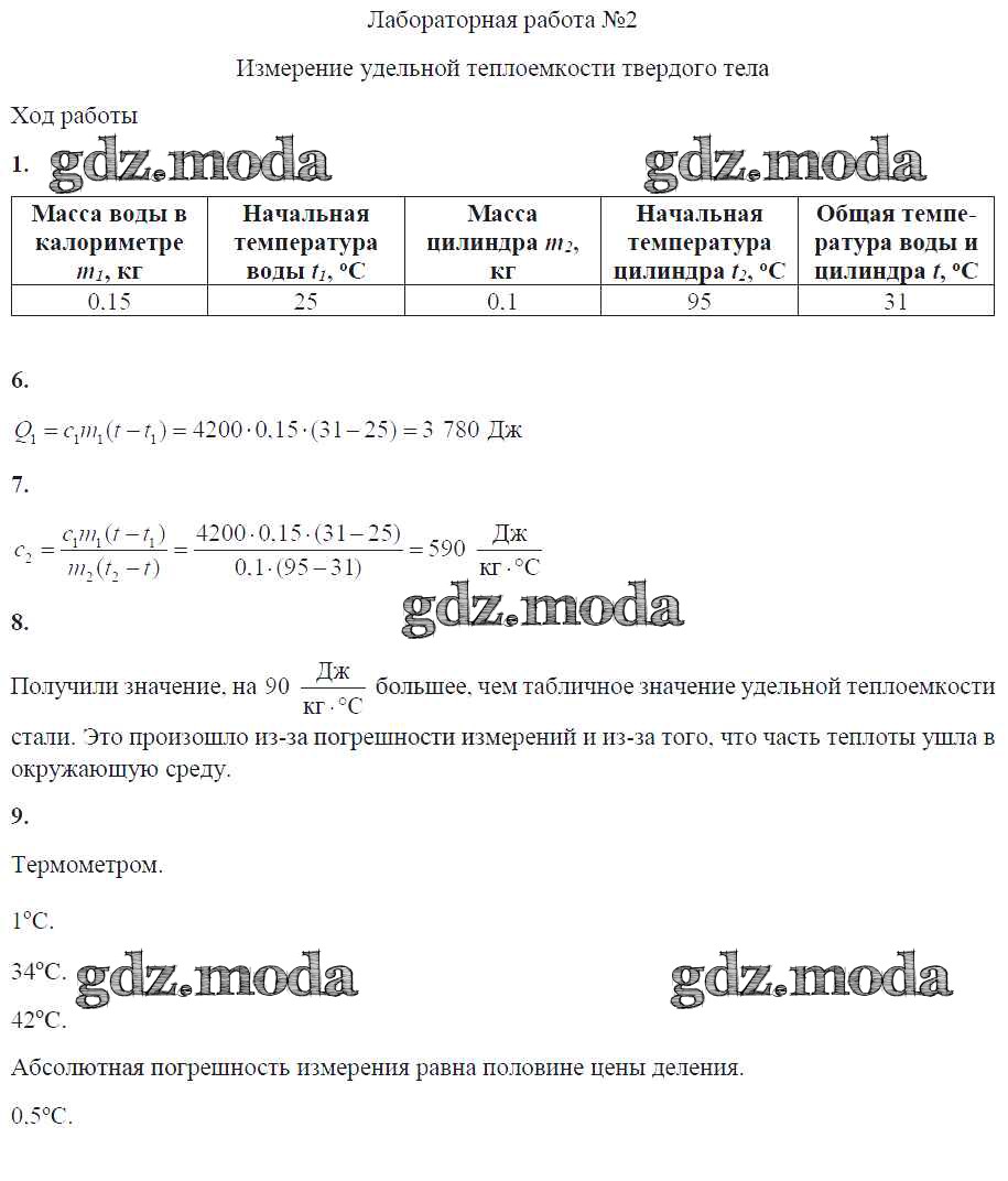 ГДЗ решение к заданию № ЛР №2. Измерение удельной теплоемкости твердого тела Физика 8 класс тетрадь для лабораторных работ Минькова Р.Д. (к уч. Перышкина) Экзамен 2014 ФГОС бесплатно на гдз.мода!