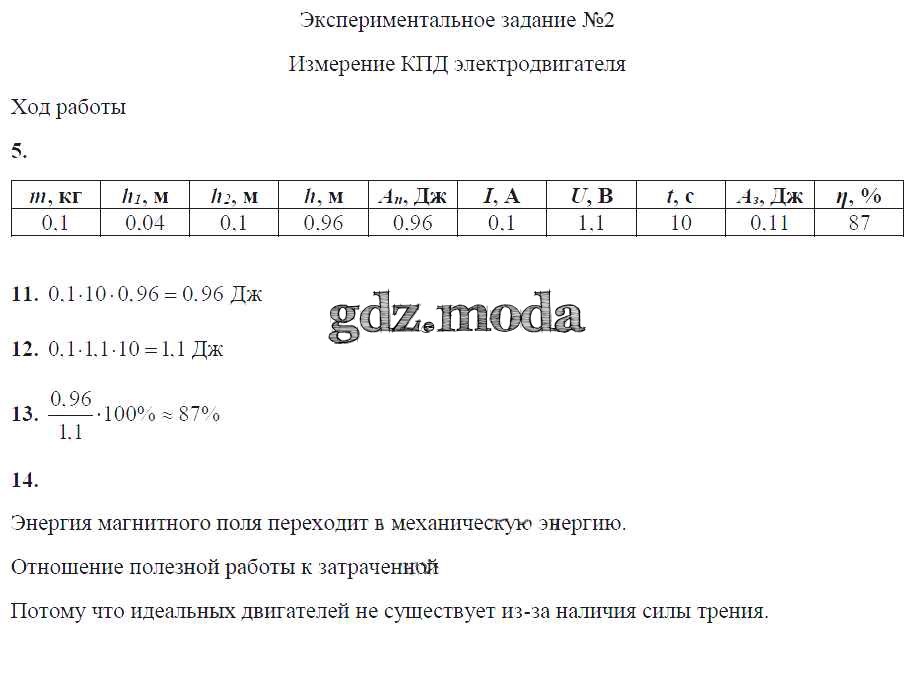 ГДЗ решение к заданию № ЭЗ №2. Измерение КПД электродвигателя Физика 8 класс тетрадь для лабораторных работ Минькова Р.Д. (к уч. Перышкина) Экзамен 2014 ФГОС бесплатно на гдз.мода!