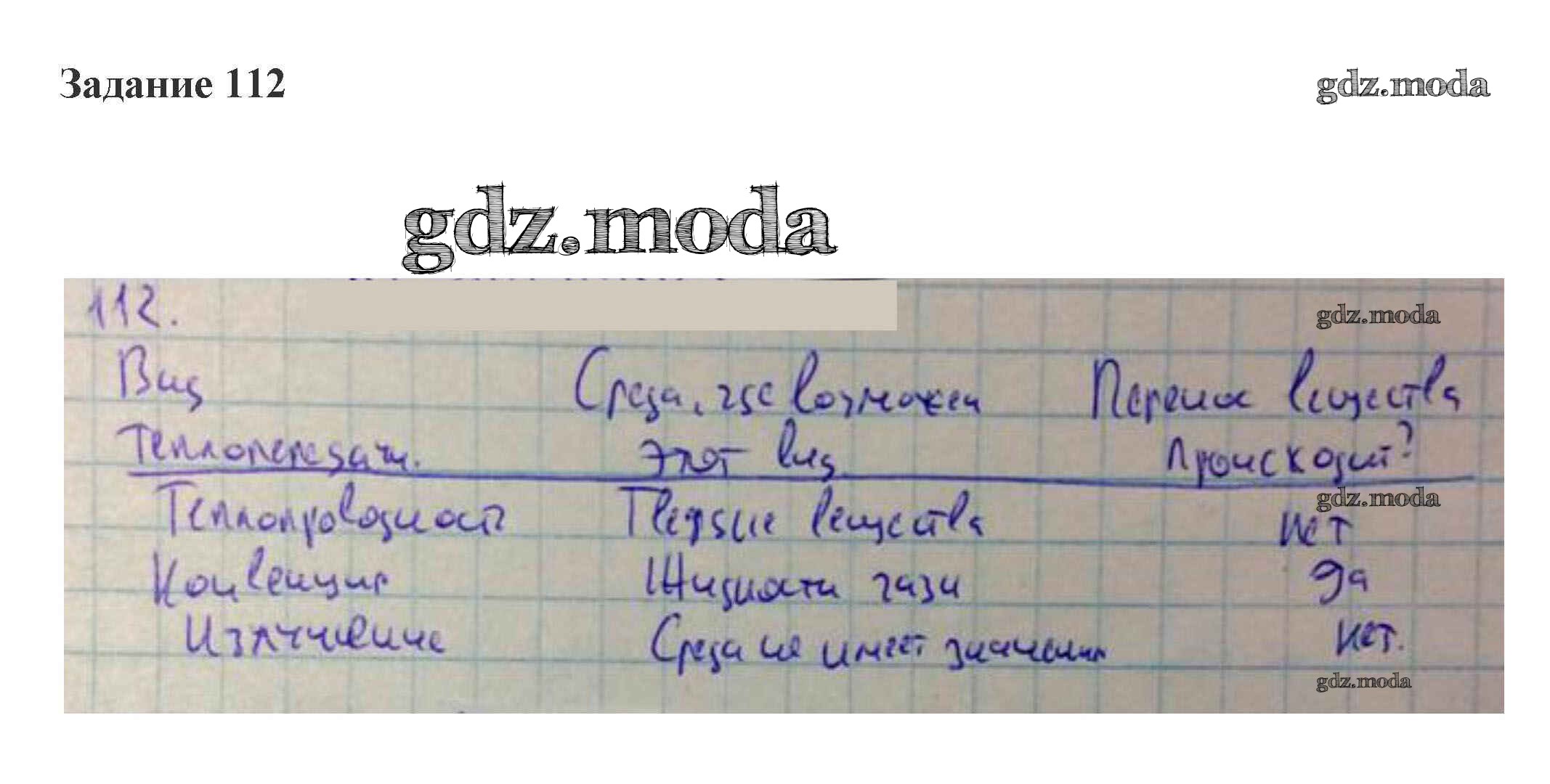 ОТВЕТ на задание № 112 Рабочая тетрадь по Физике 8 класс Пурышева
