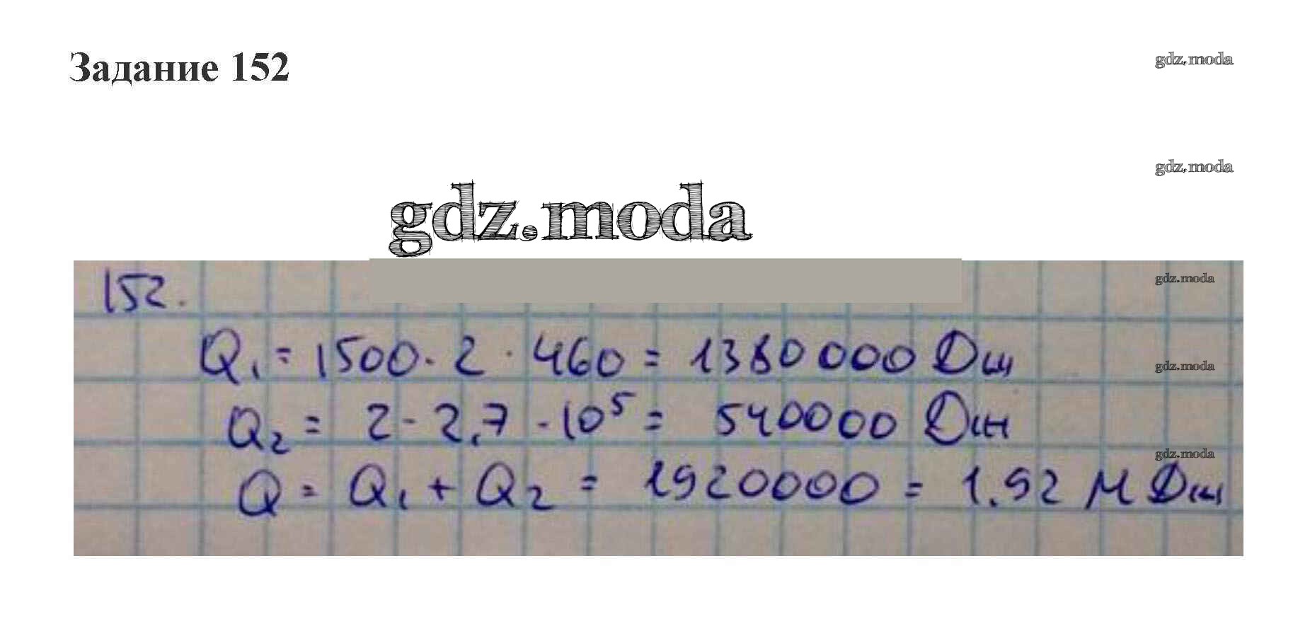 ГДЗ решение к заданию № 152 Физика 8 класс рабочая тетрадь Пурышева Дрофа 2015 ФГОС бесплатно на гдз.мода!