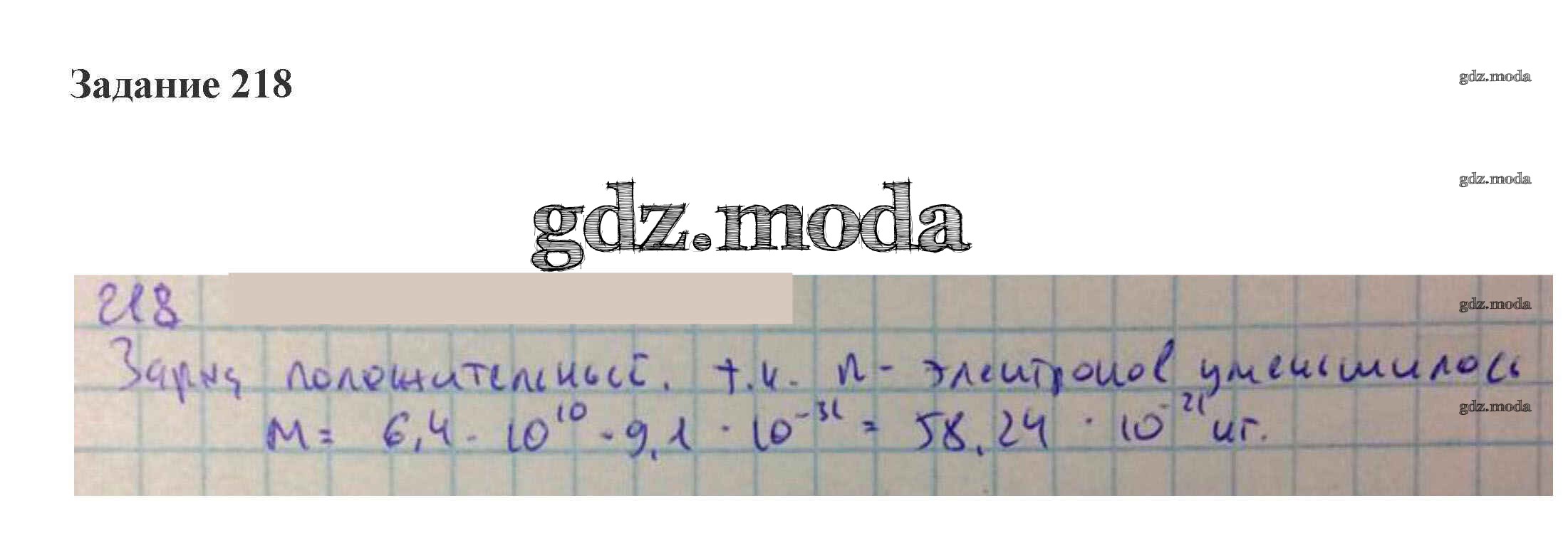 ГДЗ решение к заданию № 218 Физика 8 класс рабочая тетрадь Пурышева Дрофа 2015 ФГОС бесплатно на гдз.мода!