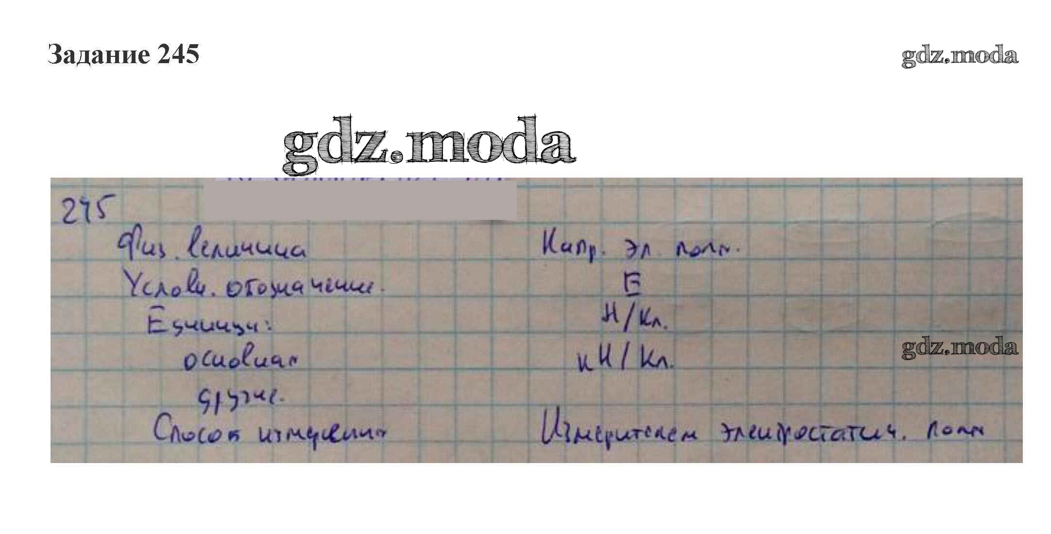 ГДЗ решение к заданию № 245 Физика 8 класс рабочая тетрадь Пурышева Дрофа 2015 ФГОС бесплатно на гдз.мода!