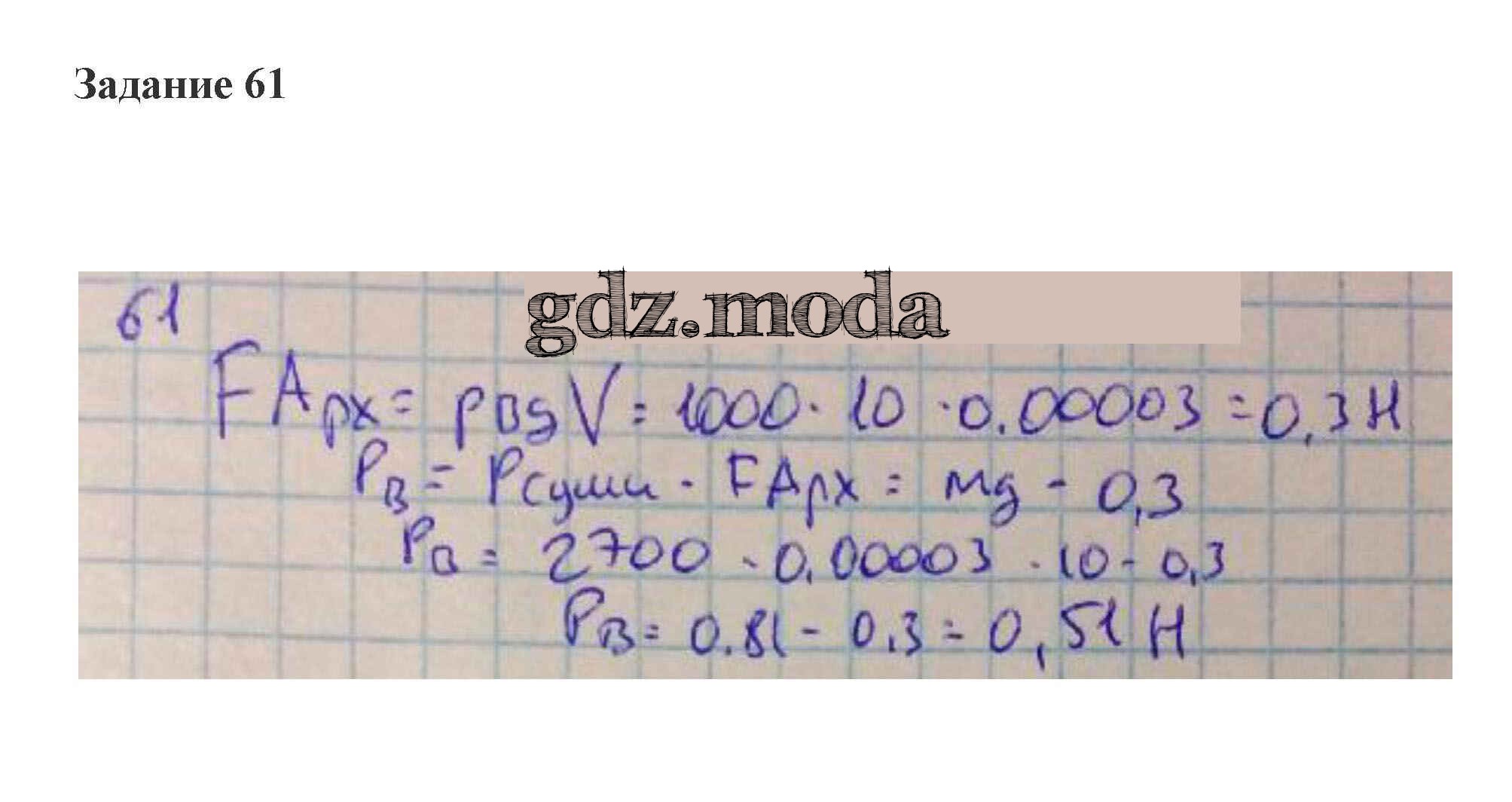 ОТВЕТ на задание № 61 Рабочая тетрадь по Физике 8 класс Пурышева