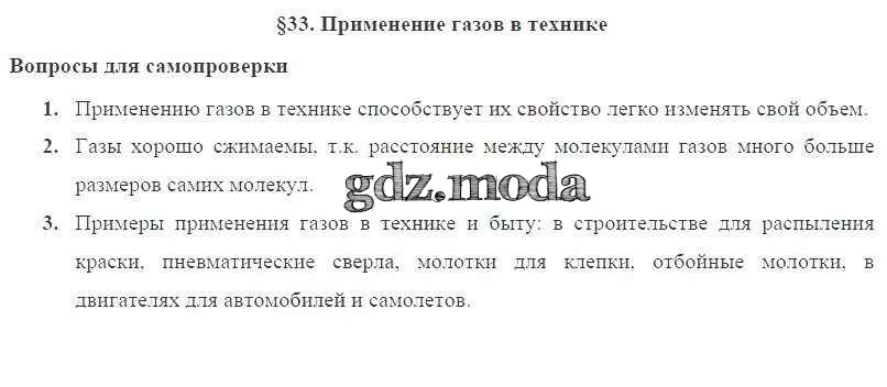ГДЗ решение к заданию № § 33. Применение газов в технике Физика 8 класс Пурышева Н.С. Дрофа 2017 ФГОС бесплатно на гдз.мода!