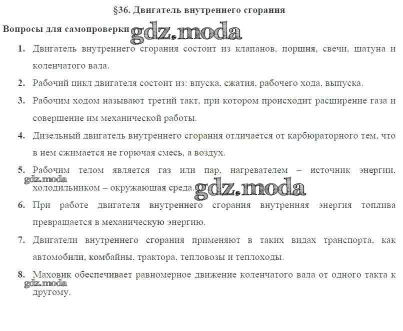 ГДЗ решение к заданию № § 36. Двигатель внутреннего сгорания Физика 8 класс Пурышева Н.С. Дрофа 2017 ФГОС бесплатно на гдз.мода!