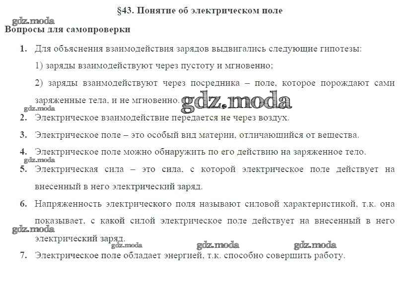 ГДЗ решение к заданию № § 43. Понятие об электрическом поле Физика 8 класс Пурышева Н.С. Дрофа 2017 ФГОС бесплатно на гдз.мода!