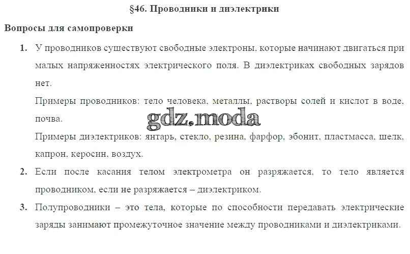 ГДЗ решение к заданию № § 46. Проводники и диэлектрики Физика 8 класс Пурышева Н.С. Дрофа 2017 ФГОС бесплатно на гдз.мода!